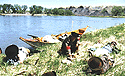 Three and one half miles down from Pablo Rapids, on the south shore, is Slaughter River and just up stream on the north is the encampment for Clark and Lewis for May 29, 1805 and again on June 29, 1806 -- when they were on the way down the Missouri toward home. On the way up on the evening of May 29, Lewis writes: