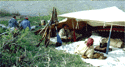 All returned to camp and we made our supper, a southwest treat of chili, hardtack, salt-pork, and all washed down with boiled coffee. Just as the supper was finished, rain started to fall, and did so almost throughout the night. In the morning, the rain had passed, and an overcast sky covered the area.All hands were up at about ten o'clock a.m. Except for Dan'l, who said that he preferred to spend time in his bedrolls. I started coffee, and Gerald prepared some fired salt-pork. We all took a late breakfast. All hands scattered their bedrolls out in the breeze and some intermit sunlight to dry the light moisture from the cloth.