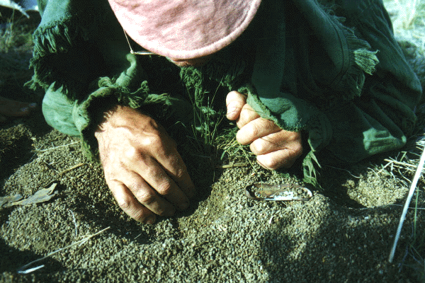 In the morning, to get the fire going, I was compelled to dig a rather deep hole to shelter the embers from the wind, so as to not let the heat run sideways and effectively bring the pot to a boil. At this time of year there is a good amount of dry long blade grasses in and around the encampment, so starting the fire was of little concern. What was the concern was the containment of a small fire as not to let it get out of control and set the surrounding prairie ablaze. I was continually compelled to stop from my duties and stomp the blaze in order to gain control. All hands are well as we begin our decent into the "White Cliffs" area.